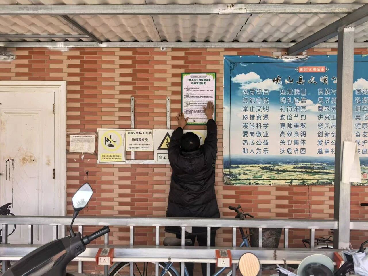 為營造濃厚創(chuàng)建氛圍、凝聚共建共識(shí),多措并舉開展宣傳引導(dǎo)工作。在小區(qū)公共區(qū)域張貼《寧靜小區(qū)居民公約》及宣傳標(biāo)牌,在配電房張貼《寧靜小區(qū)公用設(shè)施設(shè)備噪聲管理制度》,明確責(zé)任主體與管控措施;在中心花園制作安裝《娛樂、體育鍛煉指示牌》,規(guī)范活動(dòng)時(shí)間和音量要求。同時(shí),借助社區(qū)LED顯示屏滾動(dòng)播放宣傳標(biāo)語,通過小區(qū)微信群、QQ群推送噪聲防治知識(shí),開展“敲門行動(dòng)”,入戶調(diào)查組織居民填寫調(diào)查問卷,廣泛普及寧靜生活理念,鼓勵(lì)業(yè)主主動(dòng)參與創(chuàng)建工作,當(dāng)好踐行者與監(jiān)督員,凝聚起“共建共治”的強(qiáng)大合力。